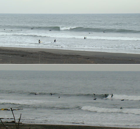 天候はパキっとなかなか晴れてきませんが、入れば楽しそうな波です。
