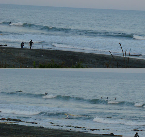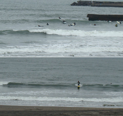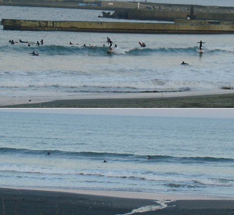 夕方の堤防横は湾内へ向う波が人気?だったようです。