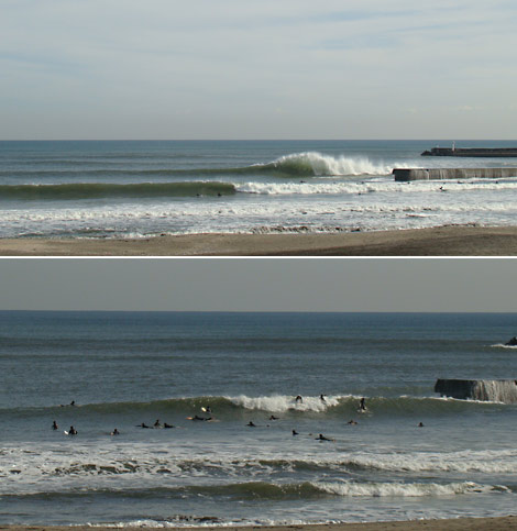 太東堤防脇は形の良い波が割れています。