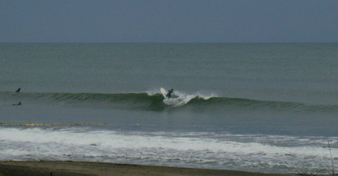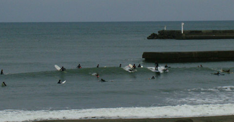 速い波がおおいですが、写真のように形良く割れる波もあります。
