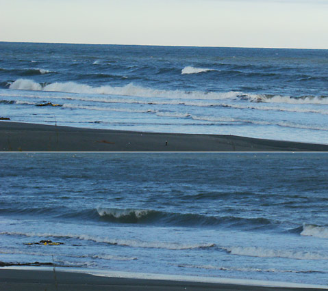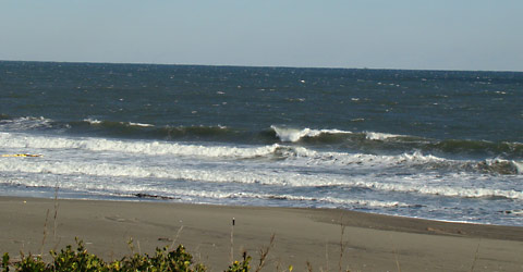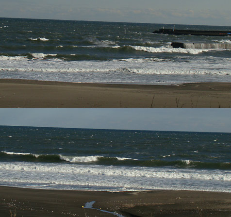 海岸線が湾曲しているので堤防横で風は少し左前から、