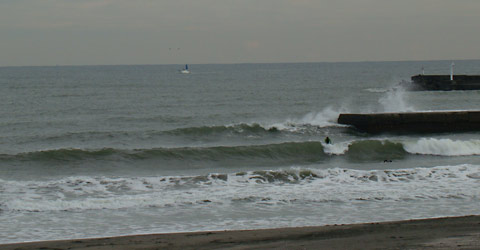 弱い北西風で面に影響はあまりせん。