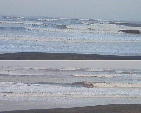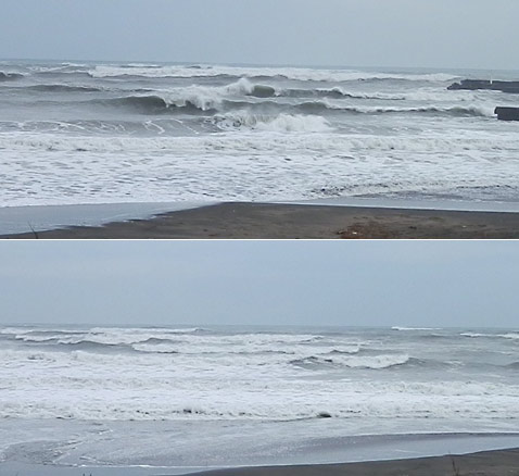 でも、一番沖の堤防にヒットし始めたセットは確実に周りの景色が変わるほど