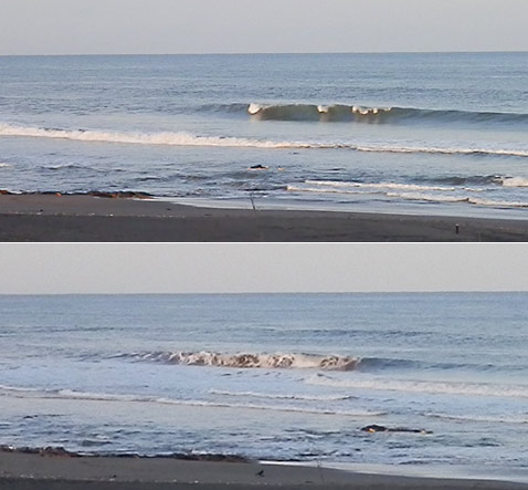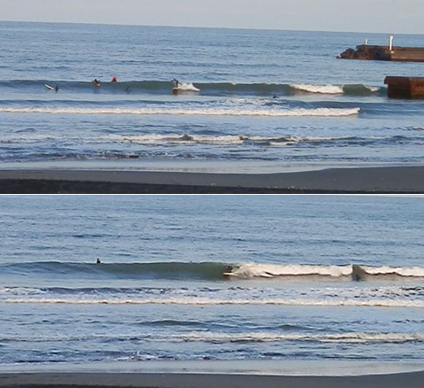 夕方遅くは引きに入って波が薄く、力ない感じです。