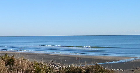 少し北側ではスモールですが、クリーンでライドしやすい波がブレイクしています。