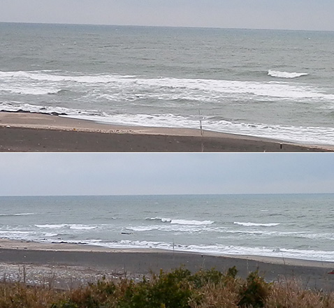 ビーチにも少し積もっています。