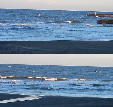 ここ太東はこの向きの風が横になるので、とてもやりにくい波になります。