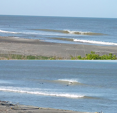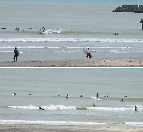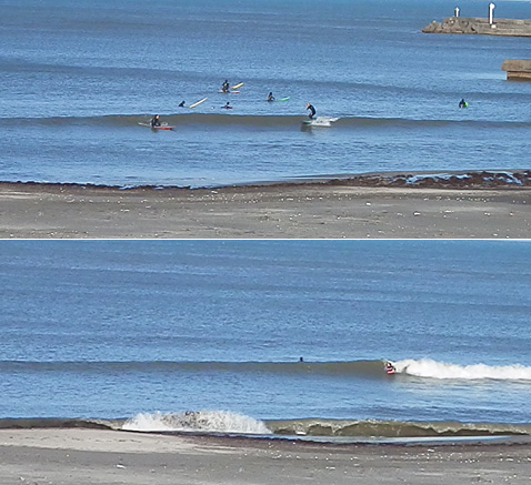 でもその瞬間は波が立ち上がるので、そこを狙ってるちゃっかりサーファーもいました。