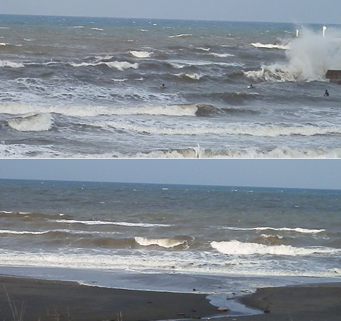 さっき会った波情報屋さんは、「鴨川とか南はもう南西になっているようです」と。