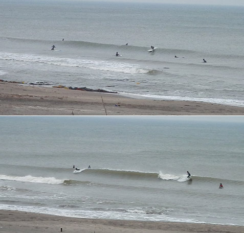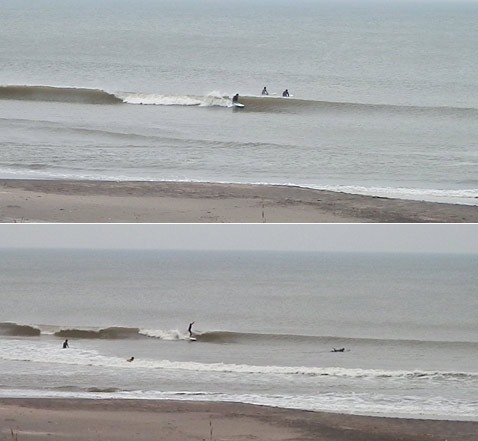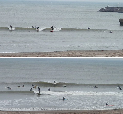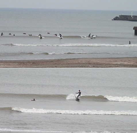 つながったセットでも、地形と、岸から戻ってくる波(バックオッシュ)で緩急のフェイスがしっかり有る