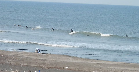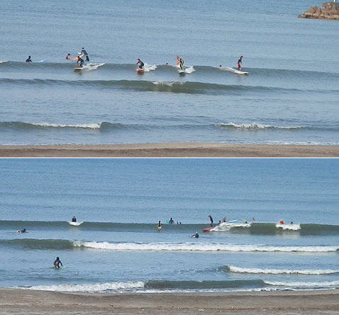 夕方になって数日同じように、風は南からの微風、潮は満ちて来て波は良くなっています。