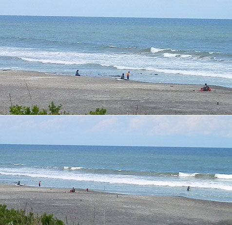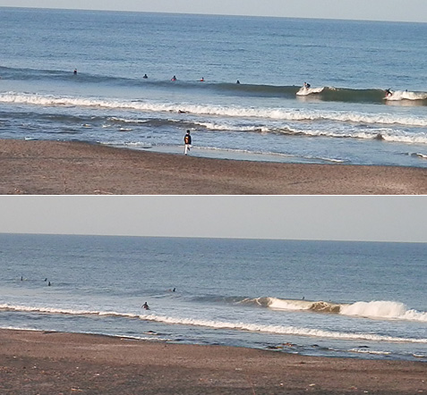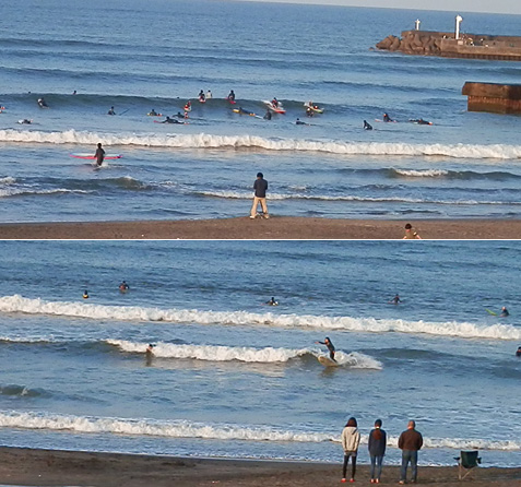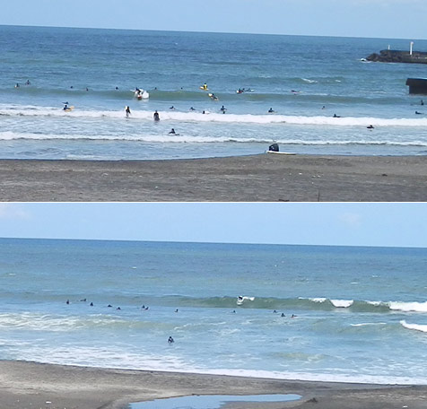 冬の間良かったここより北側も、常連サーファー達を「ダメ」と