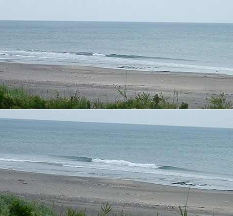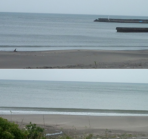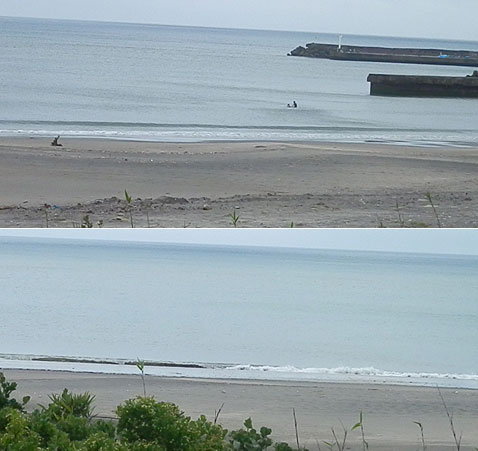 うっすらとうねりに見えるセットも正面の膝のショアブレイクがやっとでした。