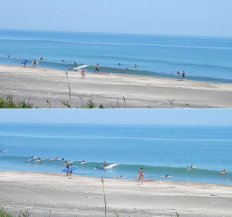 ここからショアブレイクが見えないぐらい高くなっていますので、ある意味シークレットブレイクです。