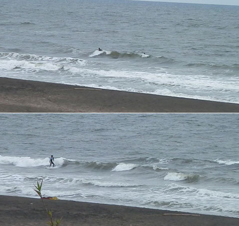 17:30でもうこの暗さ。。そしてプアーな波で皆やってます。いいぞ!