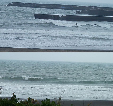 | 天候 | 曇/雨 | 風向き | 北東 | 波サイズ | ヒザ-コシ | スーツ | フルスーツ |