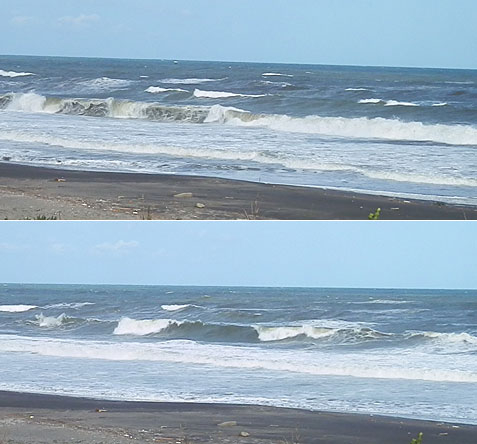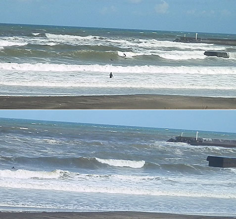 今日は昨日通過した台風18号が東海上に抜けたので東から北のうねりをキャッチしています。