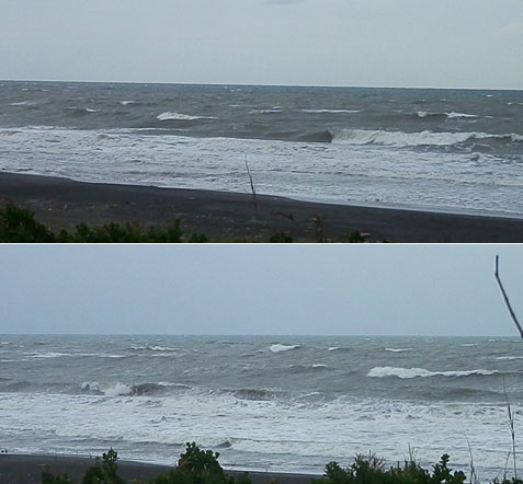 あっ、そうだ太東も今は岸に浅く砂が付いていて、カレントもあって朝のインサイドはバレルになるのも。。あったな。