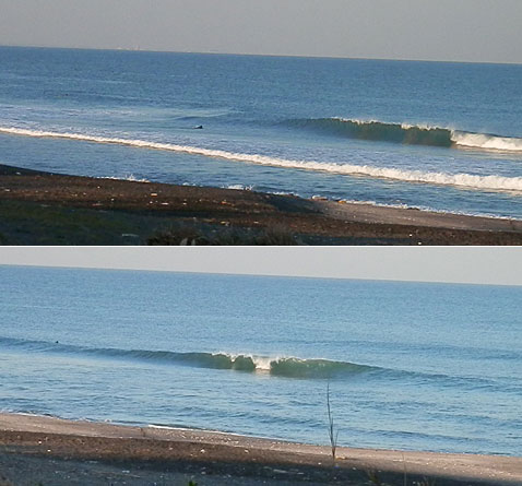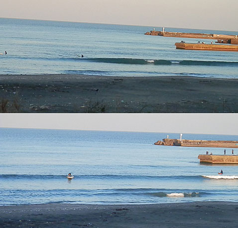数日、夕方は満ちても朝より力ない波でいまいちでしたが、今日は違いました。