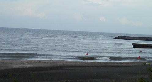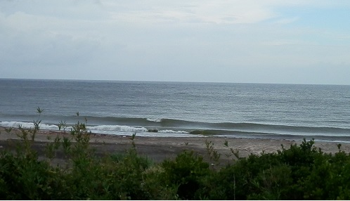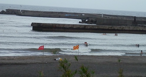 午後の太東は風が南西になり、この時間は引きから上げに入って、ほんの少し乗れそうな波が