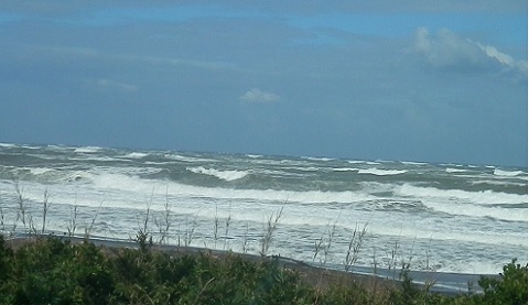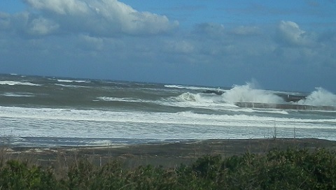 今日は台風の影響で強い北風と荒れた海になっています。