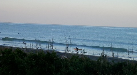 風は西風のオフショア、波は小さいですがロングボードでなら楽しく過ごせる波でした。