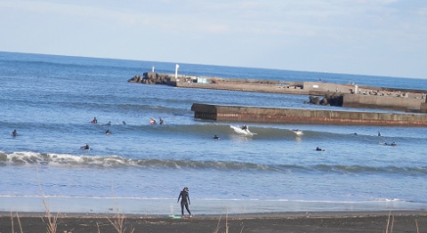 昨日の金曜日は強い西風のオフショアで木曜日からのうねりがホローしていました。