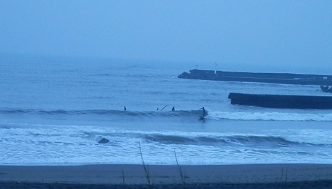 堤防横は昼頃にはサーファーが集まっていました。