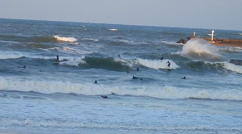 なぜか冬になると水の多さ、そしてうねりの受け方、風の影響があっても堤防横は、流れがしっかりできるようで規則正しいブレイクが見れます。