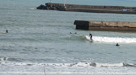 波は小さいながら朝の風のない時間は楽しかったようです。
