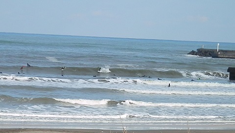 お昼にかけて堤防横は40人以上のサーファーでした。ワイド気味に入ってくるからか?