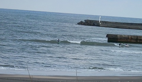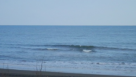 お昼過ぎに緩やかに満ちた堤防横はそこから徐々に引きに入って波は薄く、力なくなってきました。