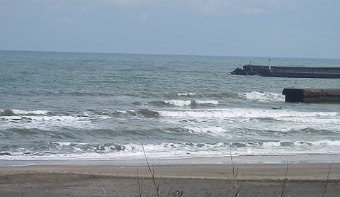 2月に入ってはずっとできている堤防横は今日の午後の南風で、