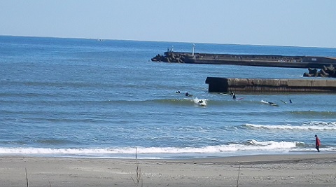 11時過ぎて少し弱くつながって来ていますがロングボードなら楽しめそうです。