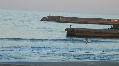 勿論引きへ向かって波は薄くなりますがロングなら夕方まで充分遊べる波です。