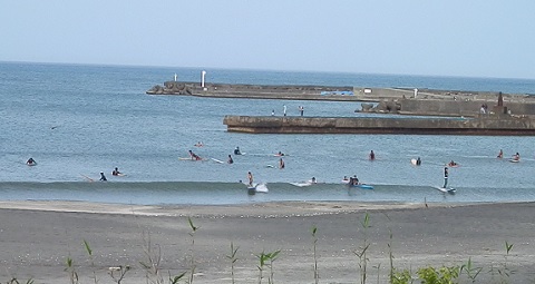 風は南西の強め、引きの時間はなんとか膝サイズのブレイクで家族連れが遊ぶには良かったかな。
